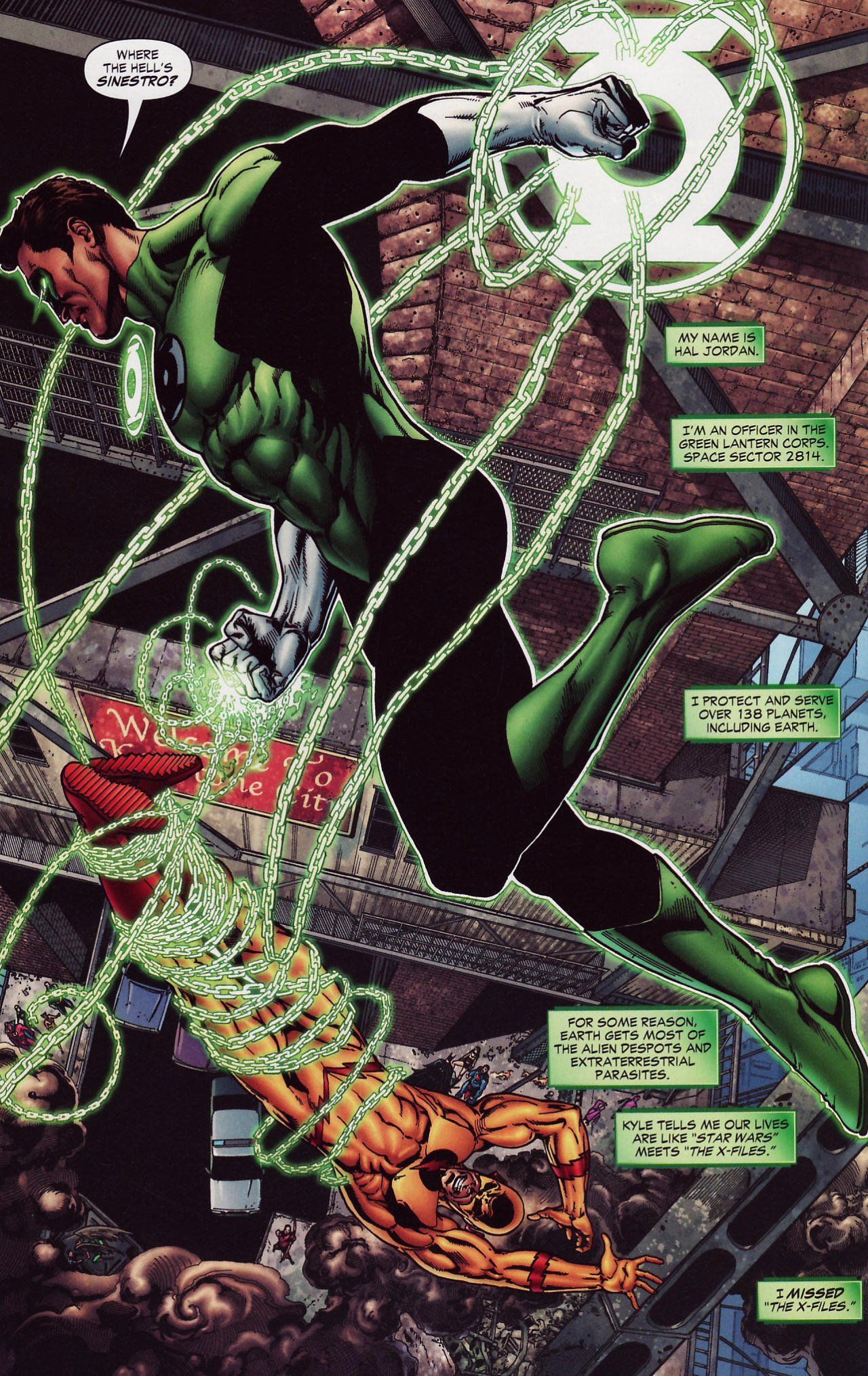 - TBA | Hal catches Flash with his Power Ring beam when Superman and Hawkman could not.