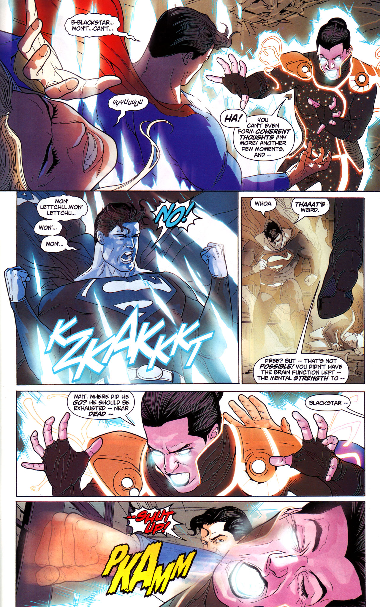 Superman punches away Superboy-Prime